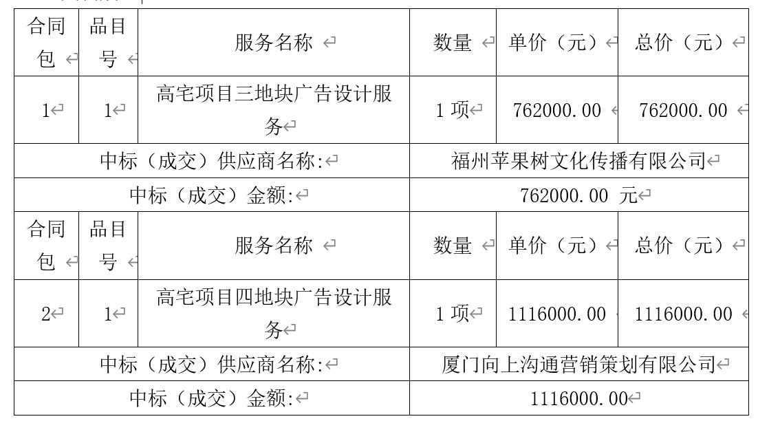 高宅項目三、四地塊廣告設(shè)計服務(wù)采購項目成交公告 2024/8/28 21:08:07