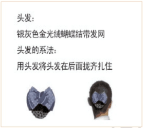 1、標(biāo)書附件營業(yè)及客服人員女士頭花技術(shù)要求為銀灰色金光絨蝴蝶結(jié)帶發(fā)網(wǎng),效果如圖片所示: